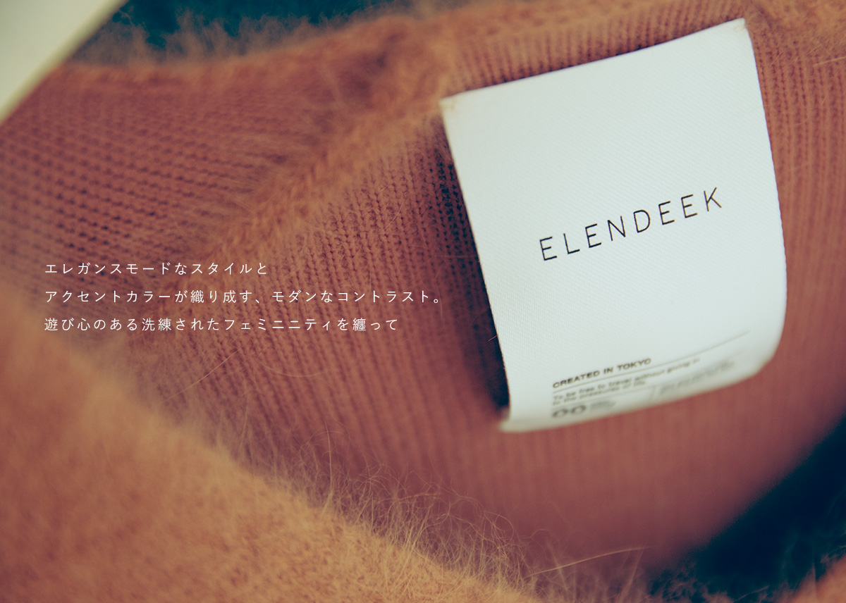 ELENDEEK 在輪廓上帶著優雅的「現代感」,並追求洗練無年齡限制的女性氛圍 ,且著重舒適感與造型感的平衡!本季一樣維持著寬鬆舒適的現代感,並帶入無領、綁帶、連帽等運動感細節,讓秋冬的服裝更顯活潑輕盈感,洋溢著輕鬆與高級的風格!