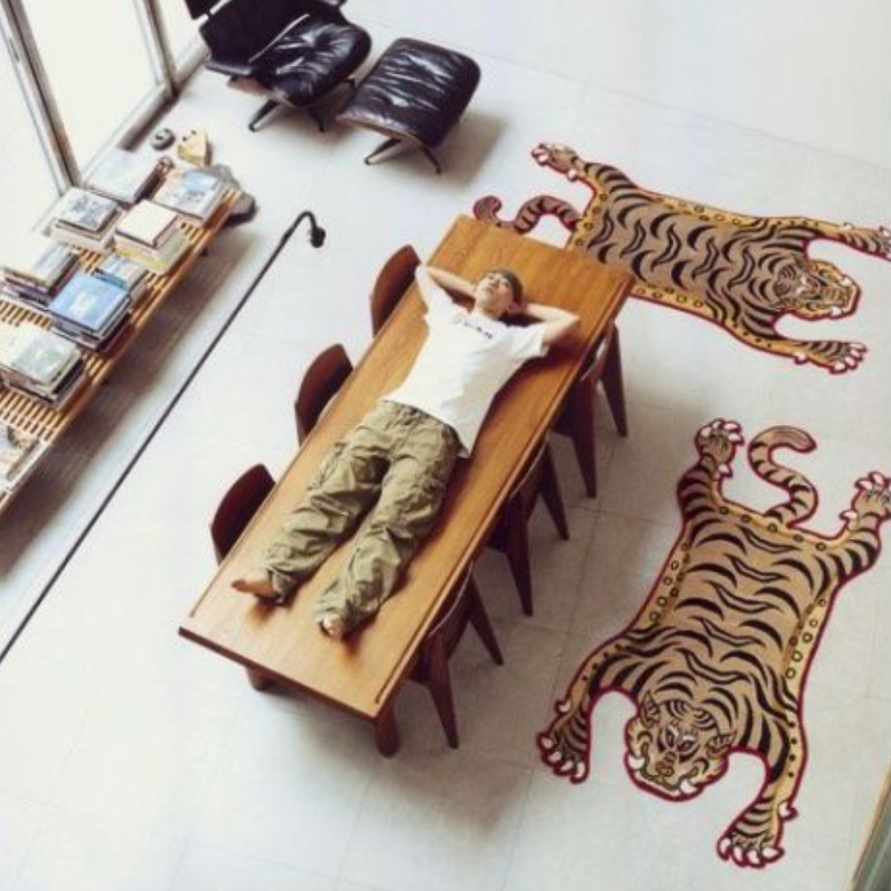 日本室內設計雜誌《Casa BRUTUS》2008年10月刊中,潮流教父NIGO家中收藏了兩張來自尼泊爾的虎毯