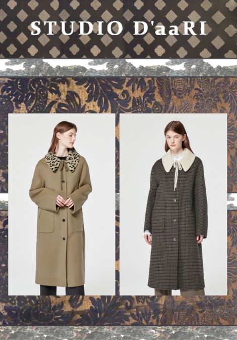 今年秋天,STUDIO D'aaRI 推出了一個很有趣的設計主題「Mom's closet tour」,靈感從兒時記憶出發,循著年幼的自己打開媽媽的衣櫃,那一刻夢幻與驚喜的感受。本季主題圍繞復古風的元素,採用溫暖的色系,毛絨領片和翻領大衣的設計,期望穿戴在身上時能夠回憶起深埋心裡的溫暖與溫柔,