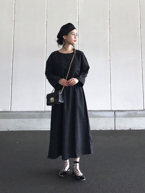 黑色洋裝搭配漆皮娃娃鞋,加入網紗襪提升層次感。你或許會發現日本女孩很喜歡白襪 X 平底鞋的搭配,喜歡日系風格的女孩們不妨嘗試一下!