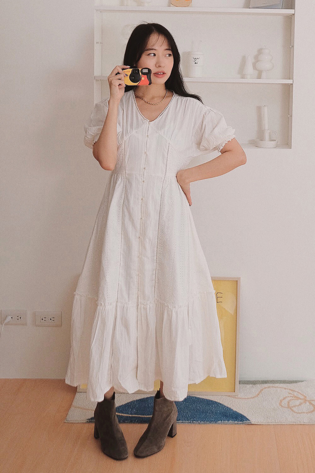 小個子女孩一輩子的穿搭課題應該就是和「比例」二字奮戰了吧(笑),為了不讓身材比例看起來過於單薄,也可以選擇硬挺材質的服裝,透過布料的挺度增加骨架比例的氣勢!或是像這件洋裝這種多層次設計也是一種選擇!