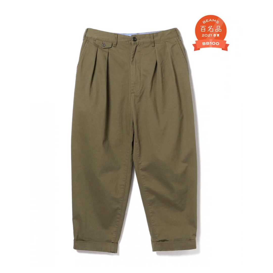 被選為2021春夏BEAMS百名品的寬版卡其褲,符合百名品的三大要素:剛剛好的設計、細節滿分CP值高、員工好評!剪裁立體的打褶設計,一年四季都適合穿的定番褲款。