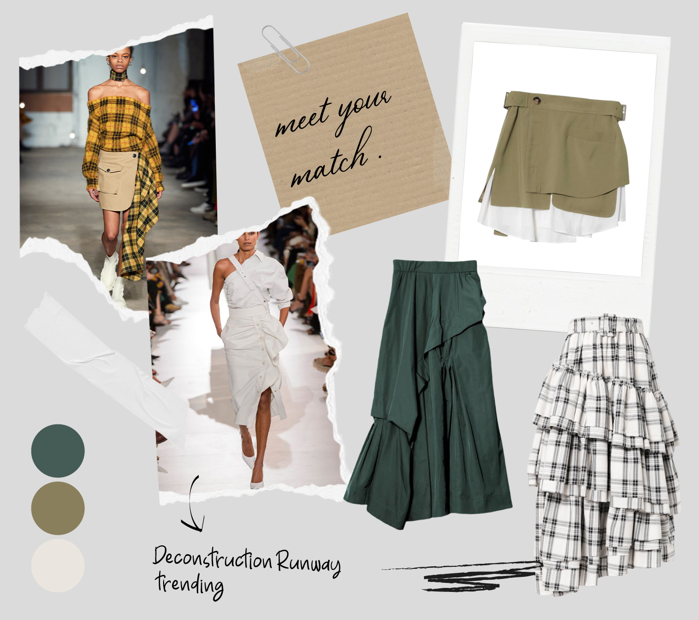 看膩素色半裙的你,這款格紋蛋糕裙非常適合你!對比色明顯的大格紋、蛋糕裙層層版型,時髦、份量感兼具,想遮屁股就帶這款!深綠色不規則抓皺長裙,從各個角度觀看都具備平衡的完美輪廓,可自行變更皺褶造型,呈現立體樣貌,無論將上衣紮進或放出都能輕鬆駕馭不費力,適合喜歡前衛造型,但愛賴床、想多睡五分鐘的你。