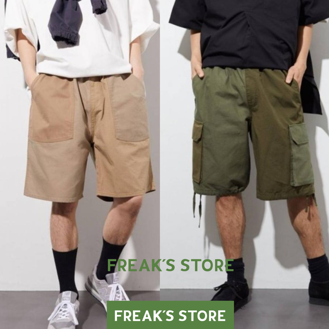 多次出現的下身穿著,就是百搭的軍裝短褲。軍裝風短褲、M-47歐式軍用短褲,復古潮流軍裝元素,加上大口袋設計提升實用性,更推出了四色任意選擇,其中最熱銷的就是這款拼接卡其!