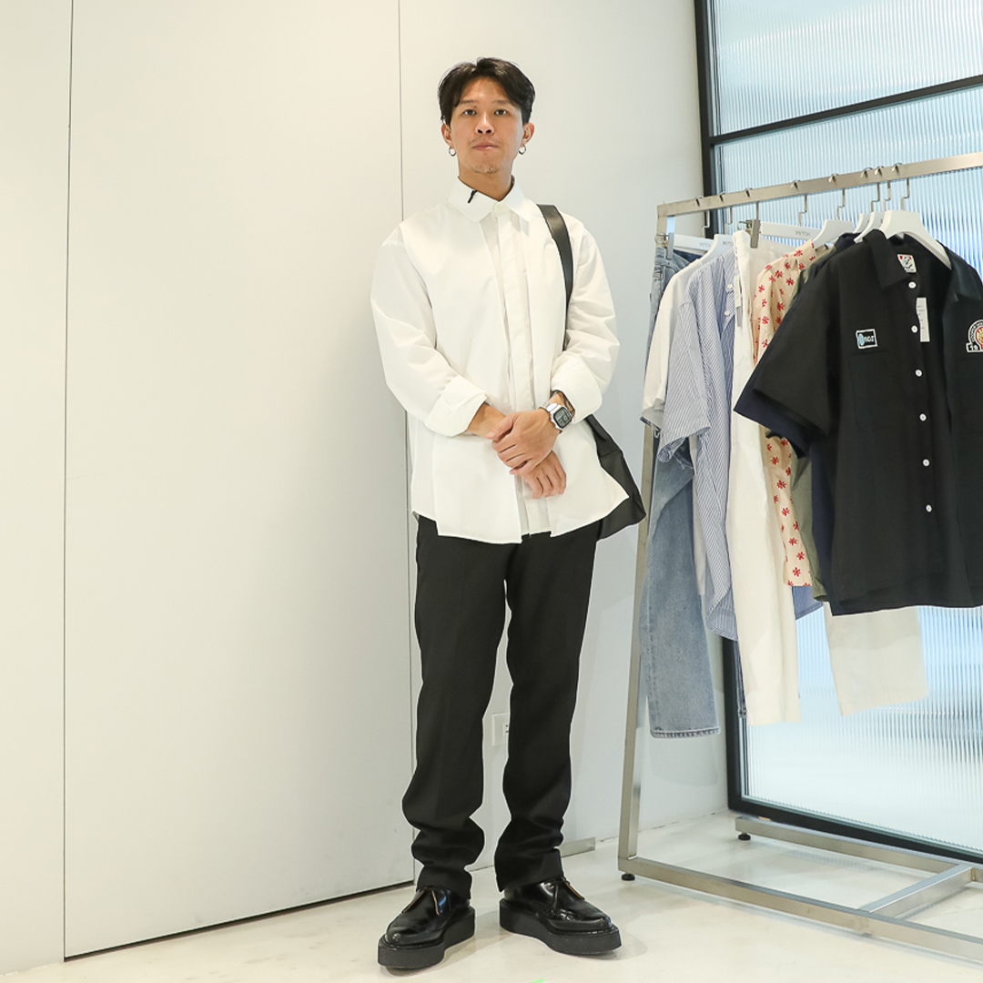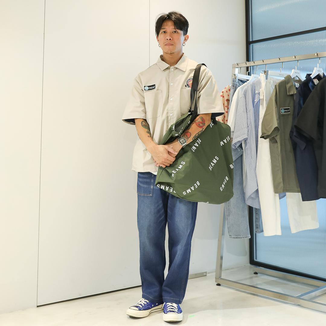 今年襯衫會是街頭穿搭的一個重點,除了寬版襯衫之外,也有較街頭類型的襯衫,例如:工裝、夏威夷及保齡球衫等等。通常這類型的襯衫下身可以搭配非素面的單品,像是圖中這件BEAMS的潑墨褲款,穿著上可以更加營造出工裝的寬鬆風格,設計有融入古著的細節,因此穿著起來更有日系的味道。