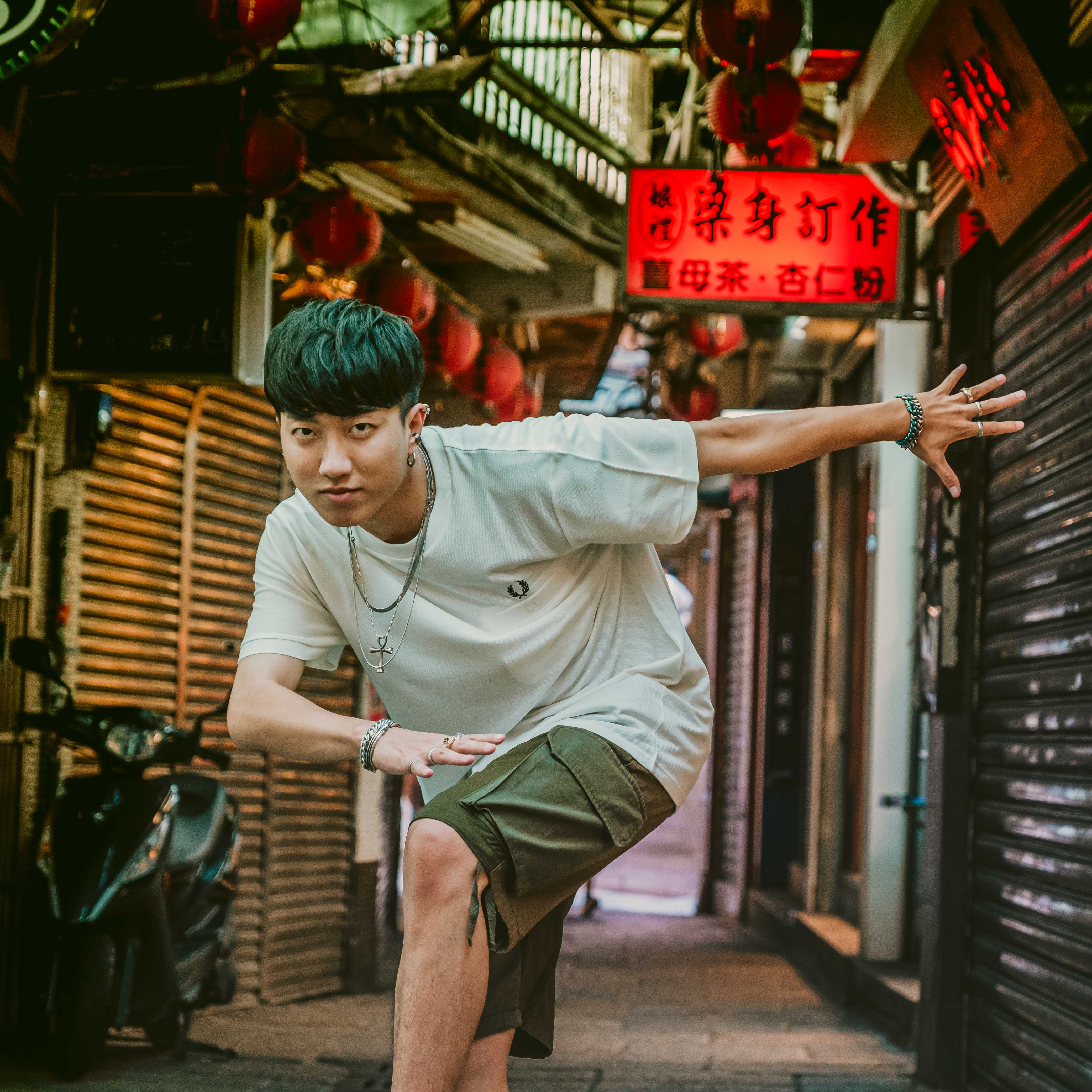 本次與英倫血統的FRED PERRY品牌合作,邀請到街舞好手tut_bread演繹三套不同風格,透過動感十足的舞蹈,展現隨心所欲的自我態度,傳遞奔放不羈的品牌精神。穿梭於九份老城巷弄之間,將街舞文化與台式懷舊背景結合,融入日系休閒元素,混搭出多元的時尚樣貌。