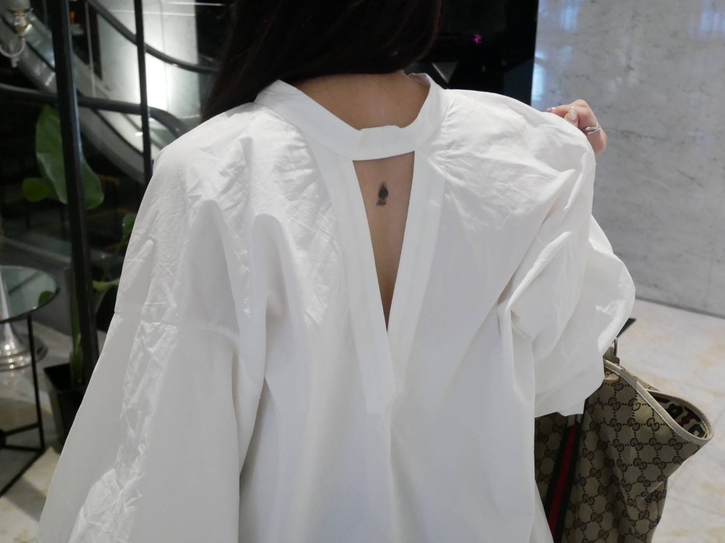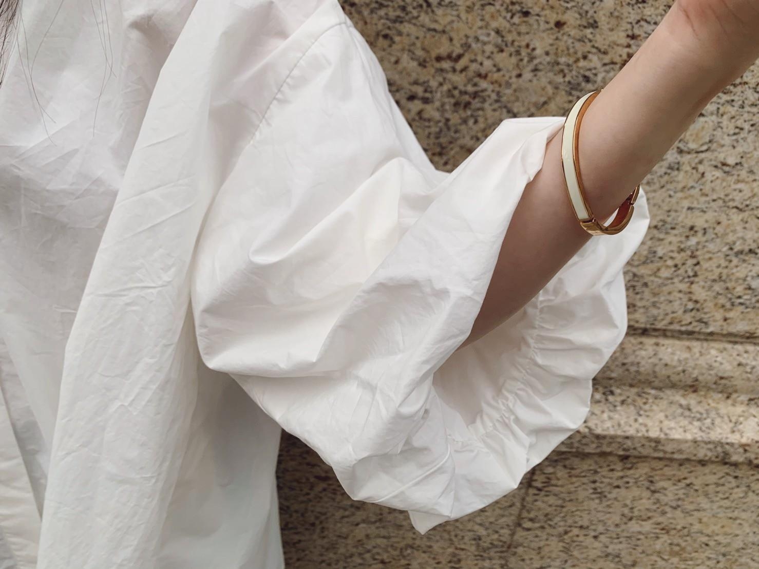 澎澎袖拉開白襯衫帶來的視覺巨大感馬上顯手細