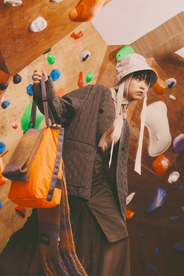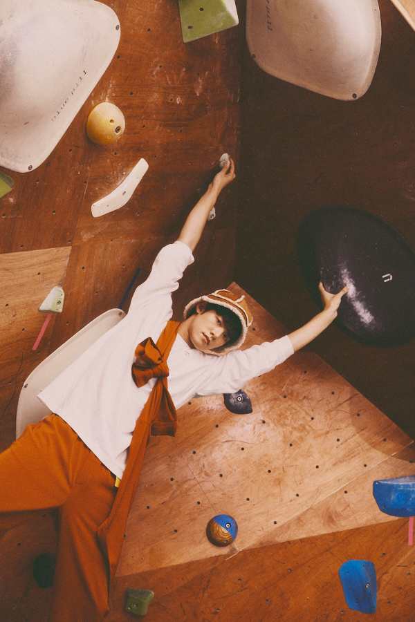 束口小包的特製背帶也與攀岩場景相互契合,帶出整體outdoor感!