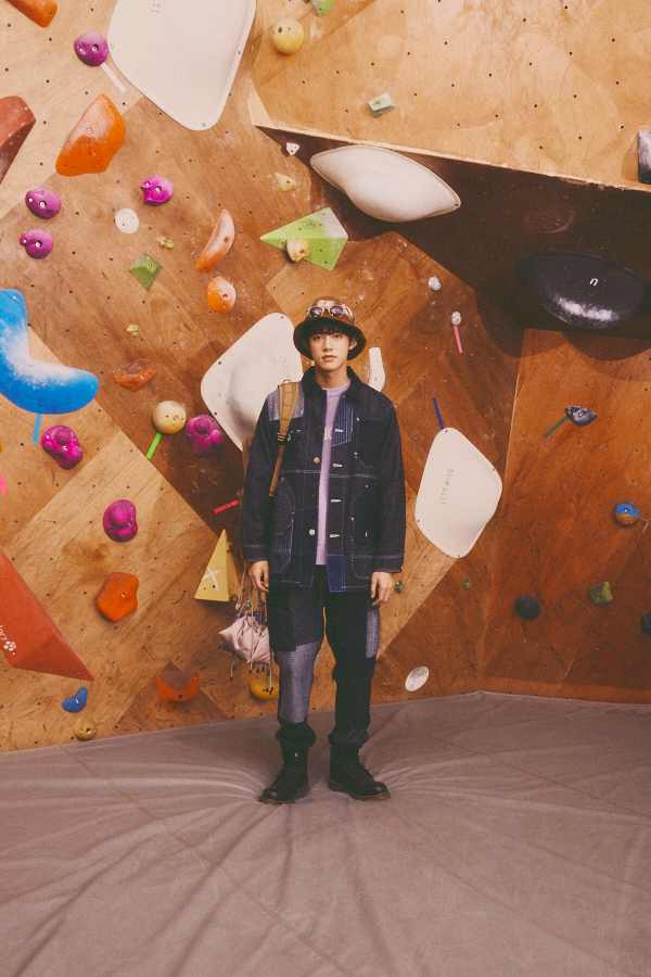 杰恩著用FDMTL丹寧刺子套裝搭配BRIEFING後背包打造不落俗套的日系工裝風格。