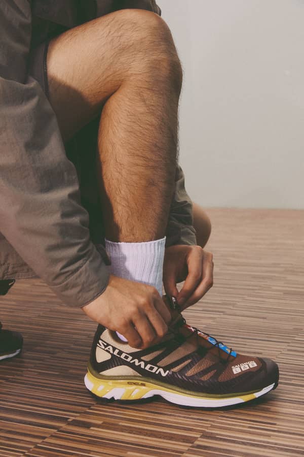 鞋款則著用備受關注的Salomon XT-4運動鞋,適用於都市漫遊和戶外運動的專業越野跑鞋型格,打造低調冷冽風格,讓你在城市中展現你的秋季自由。