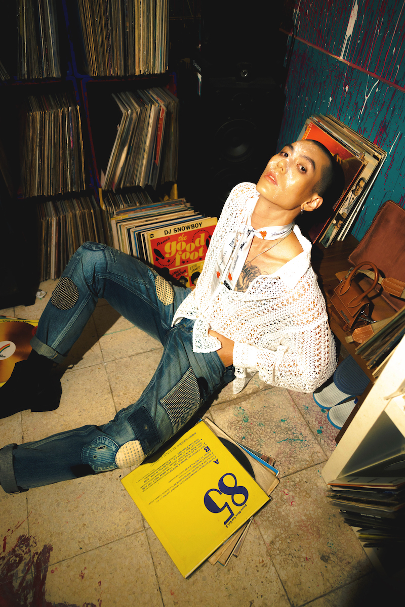 Kastane 網狀後綁帶兩穿上衣eyeye 寬版破壞抽鬚丹寧褲