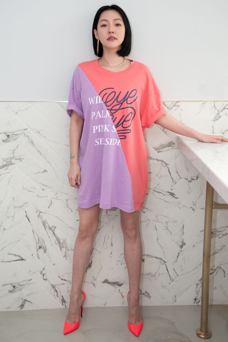 MiTCH X 貓下去涼麵人 聯名T恤UN3D. 格紋拼接層次剪裁大衣UN3D. 不規則抽皺格紋長裙