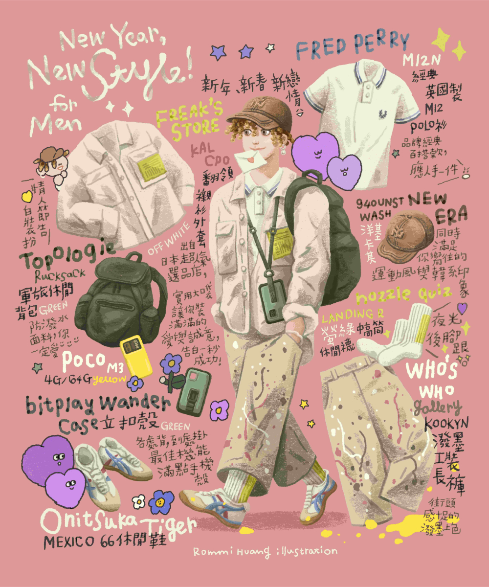 MiTCH 開站迎來首個春節假期:秉持多元的 mix all match you 之品牌精神,本次與插畫家— Rommi Huang 跨界合作,一同慶祝春節+情人節的特別時刻!服裝設計系畢業的 Rommi,以古怪風格及鮮明配色的插畫,將 MiTCH 的服飾詮釋得更引人入勝,一起用插畫迎接 NEW YEAR NEW STYLE 吧!
