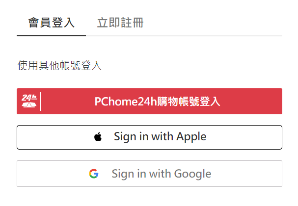 或使用第三方快速登入,以「PChome、Apple、Google」等現有帳號進行快速登入。