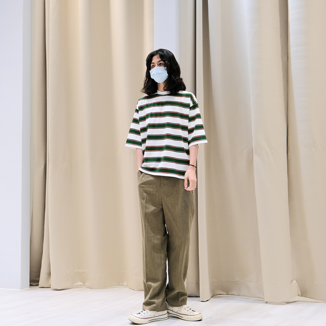 本週三套搭配都穿著的這件CIAOPANIC 落肩橫條紋撞色T恤