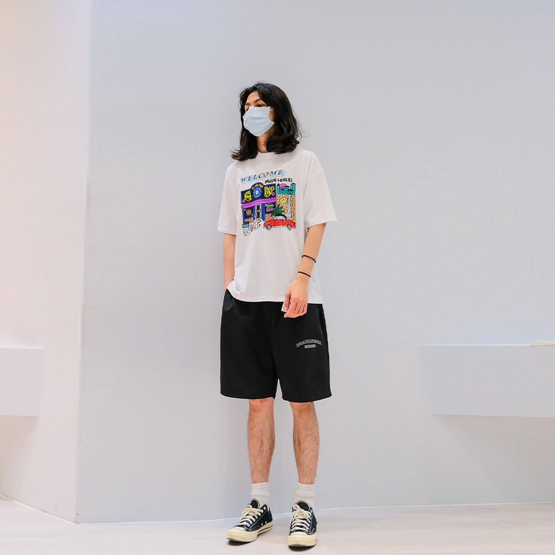 實在熱得受不了嗎?一件白T恤與短褲相信是最多人穿著的方式。Cody這套利用上身鮮豔的白色圖案T恤作為整體搭配的主角,所以下半身簡單搭配同色系的短褲與帆布鞋就十分好看!
