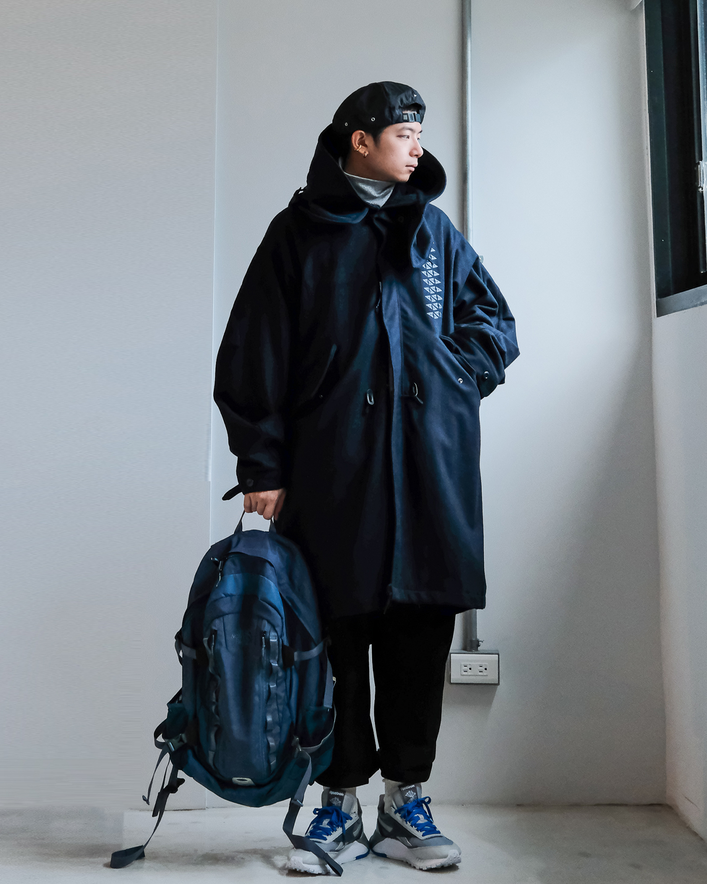 這套因為當天先選了背包,所以想打造全身海軍藍的Look,搭配
