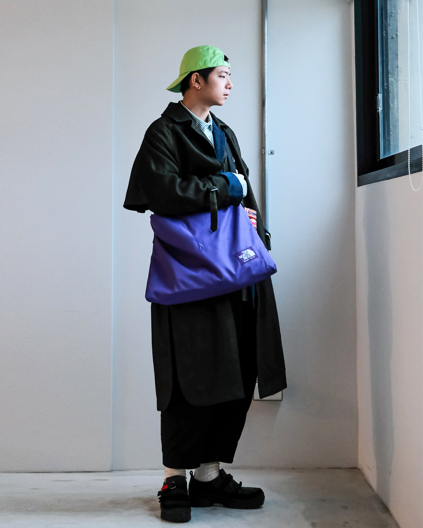 螢光綠的帽子加上有夠紫的側背包承包了整套的亮點