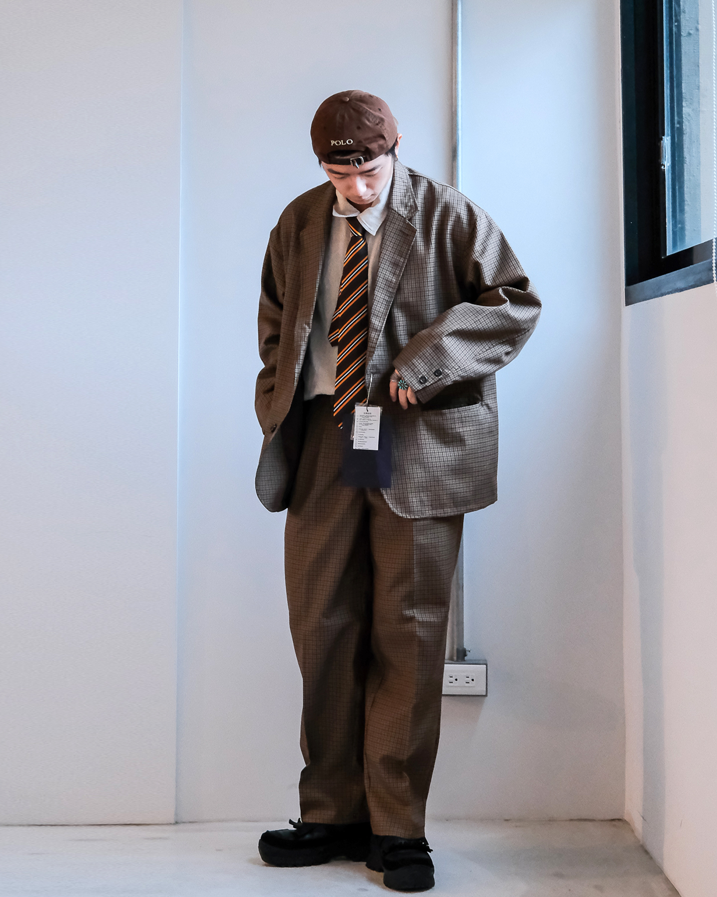 細格紋的花色是我相當喜愛的,配上些微跳色的領帶加上同色系帽