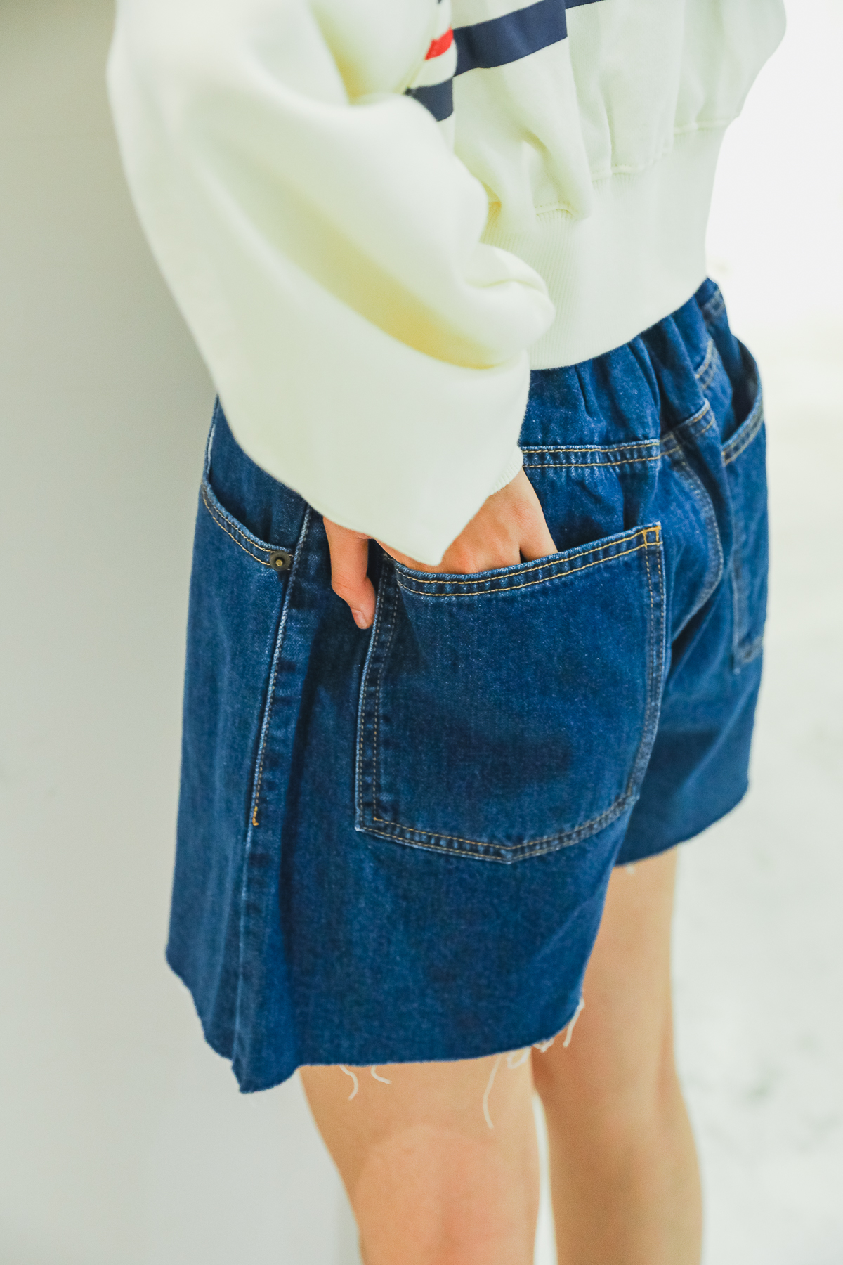 而精選單品 丹寧鬚邊彈性短褲,以褲口下襬的鬚邊為整體設計重點,後片則為彈性腰帶設計讓穿脫輕鬆便利,褲管剪裁不過度合身、方便活動,更有三種經典色系可挑選! 穿搭上可選擇短T、大學T、帽T等營造休閒氛圍,也可以搭配襯衫、針織衫穿出都會俐落風格,是一款不分季節實用性單品。