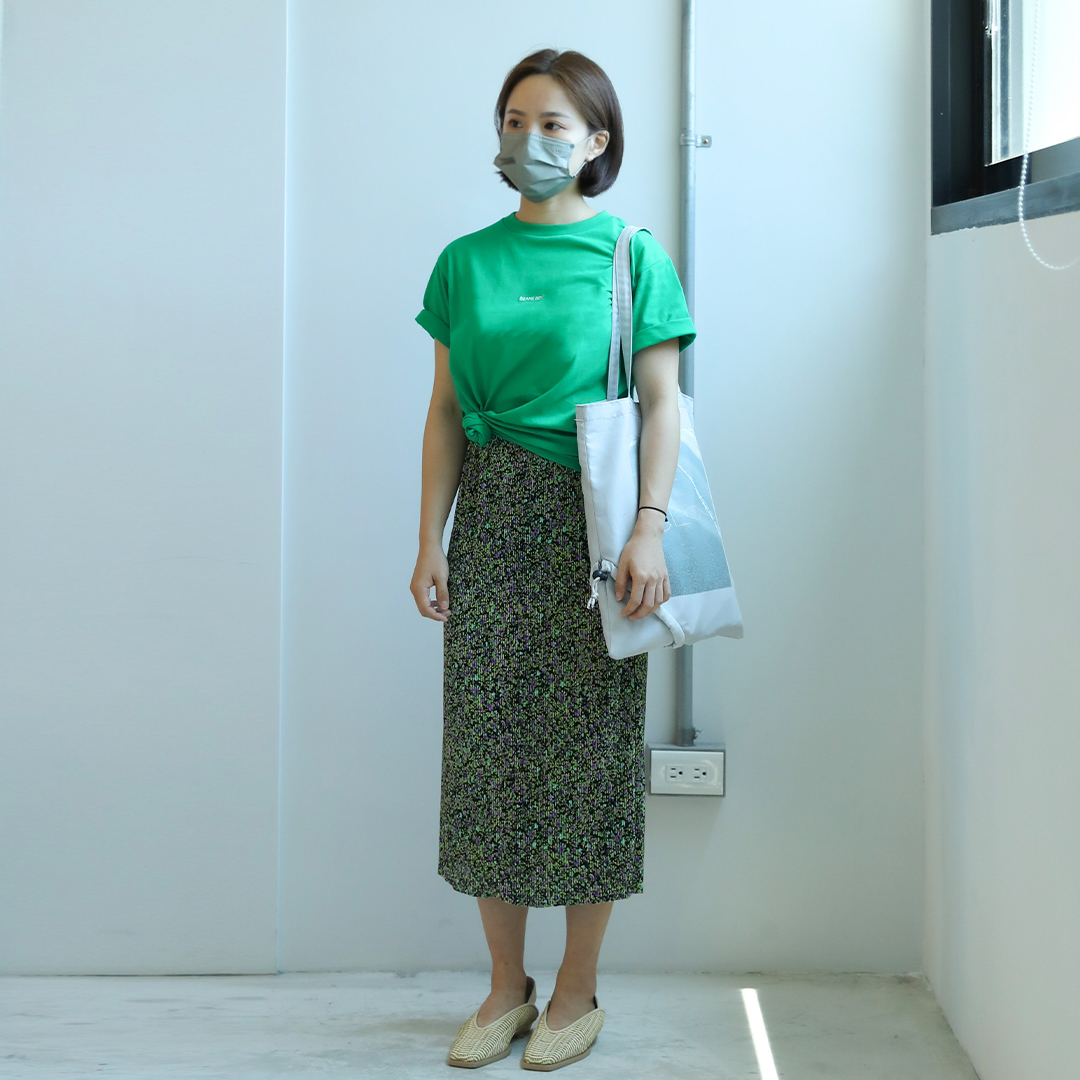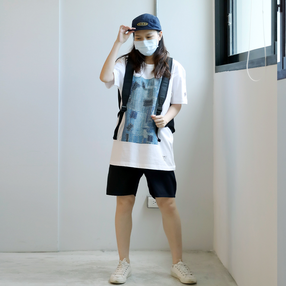 與豆子同樣是嬌小代表的女孩們,可透過不強調身形曲線的百褶裙或是配件,點亮造型分散注意力。想要寬鬆舒適感,可選擇較大尺寸,小隻女倘若覺得袖口、衣襬太長沒活力沒精神,適當捲折袖子,將T-Shirt下擺綁個結,調整長度同時讓視覺比例變得更好!
