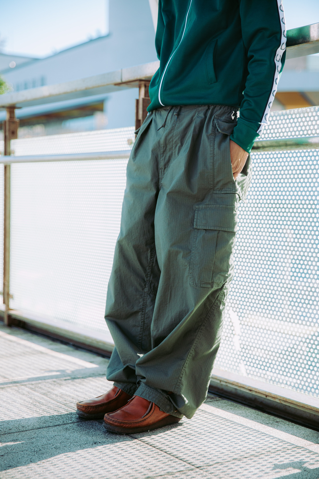 男生則選用BEAMS的軍風寬鬆氣球褲,寬大口袋充滿設計細節,腰部有抽繩可調整鬆緊程度,增添個性感!