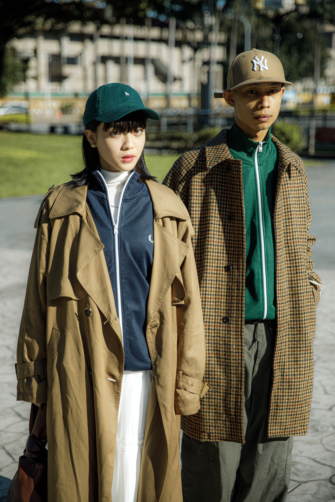 中性風的運動外套不論男女皆可穿,搭配上大衣更增添了時髦造型感,打造都市氛圍。