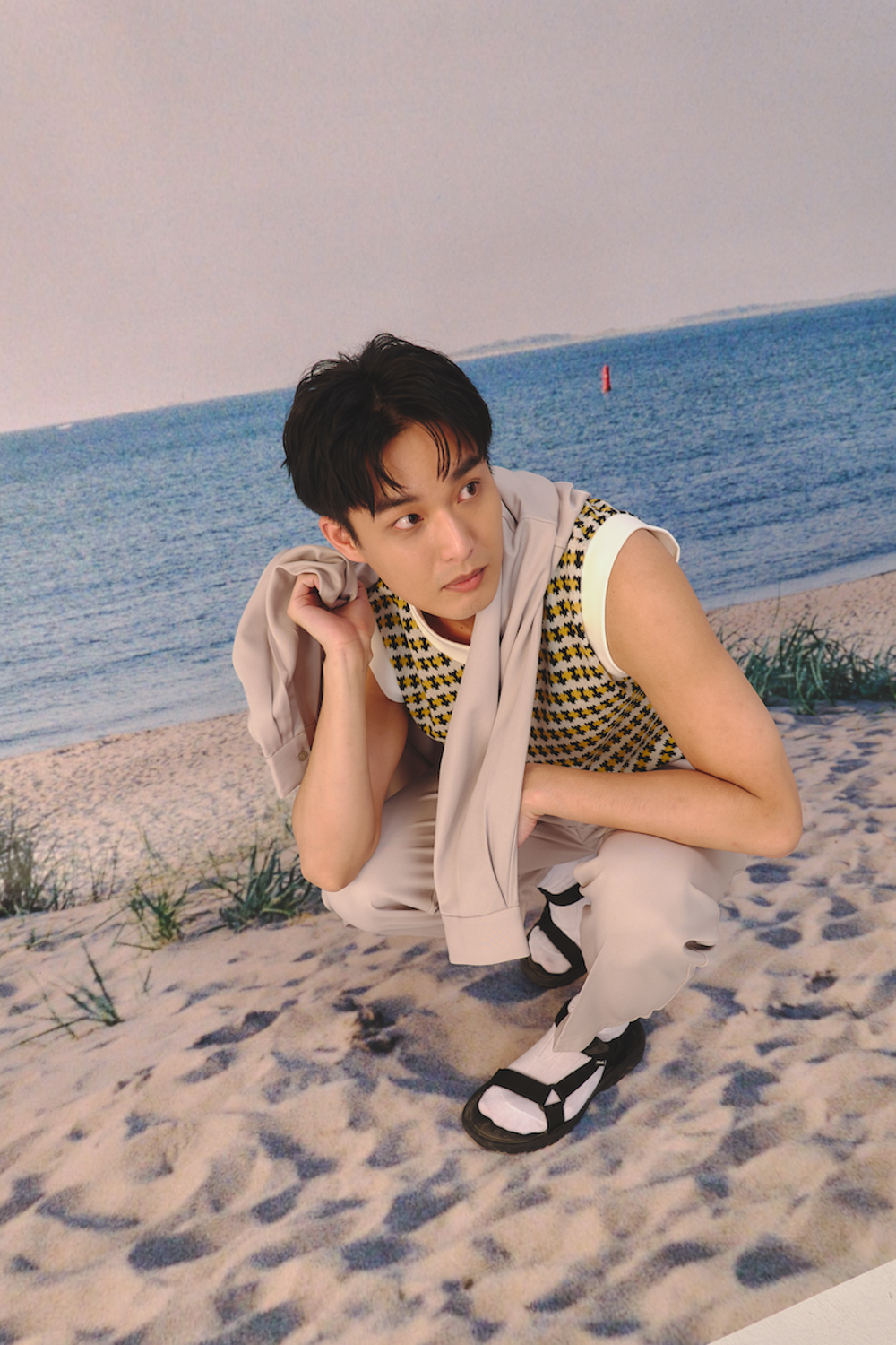 近幾年Unisex(不分性別)的穿著風格形成一股流行,安俊朋穿著來自韓國女裝品牌ROCKET X LUNCH的背心單品,撞色圖樣點綴整體造型魅力,也成功詮釋男性的衣櫥色彩!