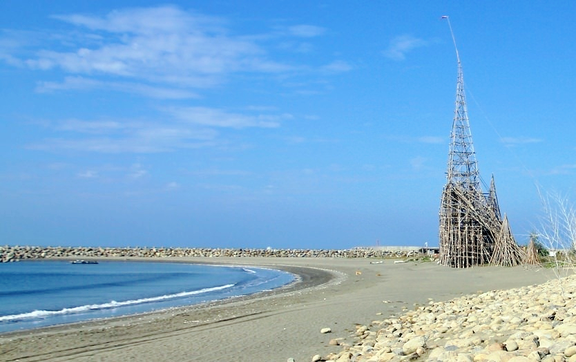 島上最出名的就是英國藝術家雨果使用竹子、廢棄蚵棚搭起37米高的日落塔,不但增添海岸線的美麗,長久以來也變成具有代表性的造景藝術, 成為漁光島的新地標,雖然日前因安全考量已被拆除,但還是在眾多照片上都能見到這經典地標。