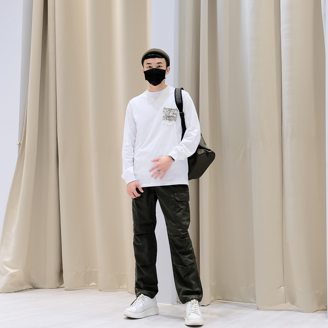 上身:Charcoal Tokyo 編織口袋長袖T恤 /size:XL